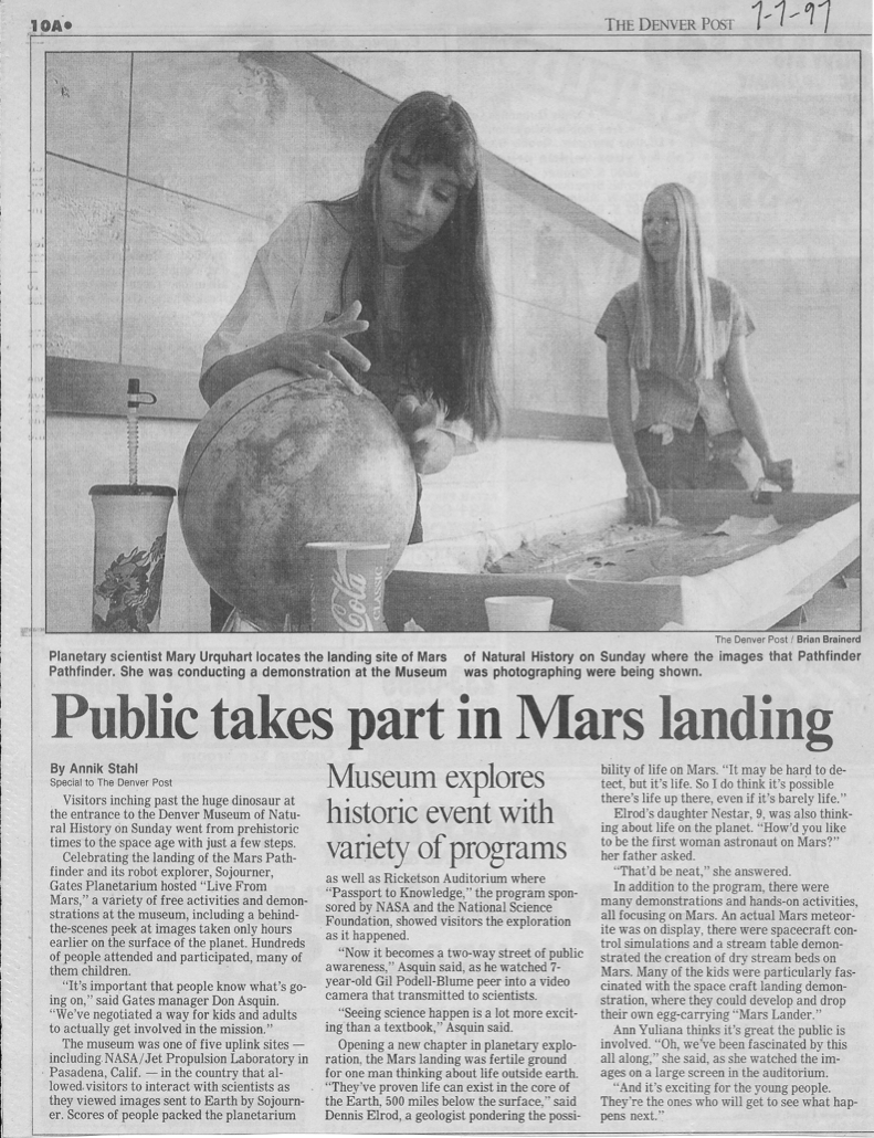 - Public takes part in Mars landing (Denver Post: Museum explores historic event with variety of programs)