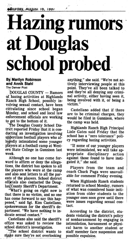 - Beginner Sports: Do coed teams create shrinking violets? (Lafayette News/Louisville Times)